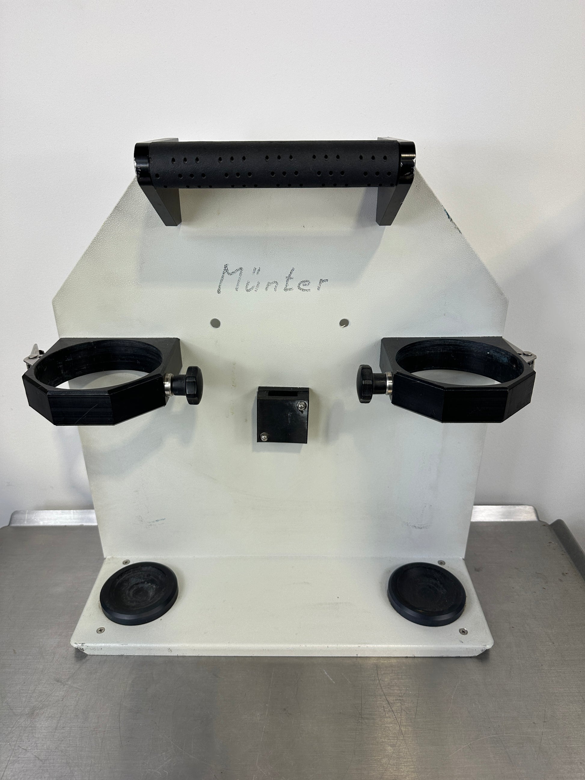 Die kompakte Bauweise mit Tragegriff macht die Halterung ideal für den mobilen Einsatz, z. B. im Rettungsdienst, Krankenwagen oder in der Notfallausrüstung.