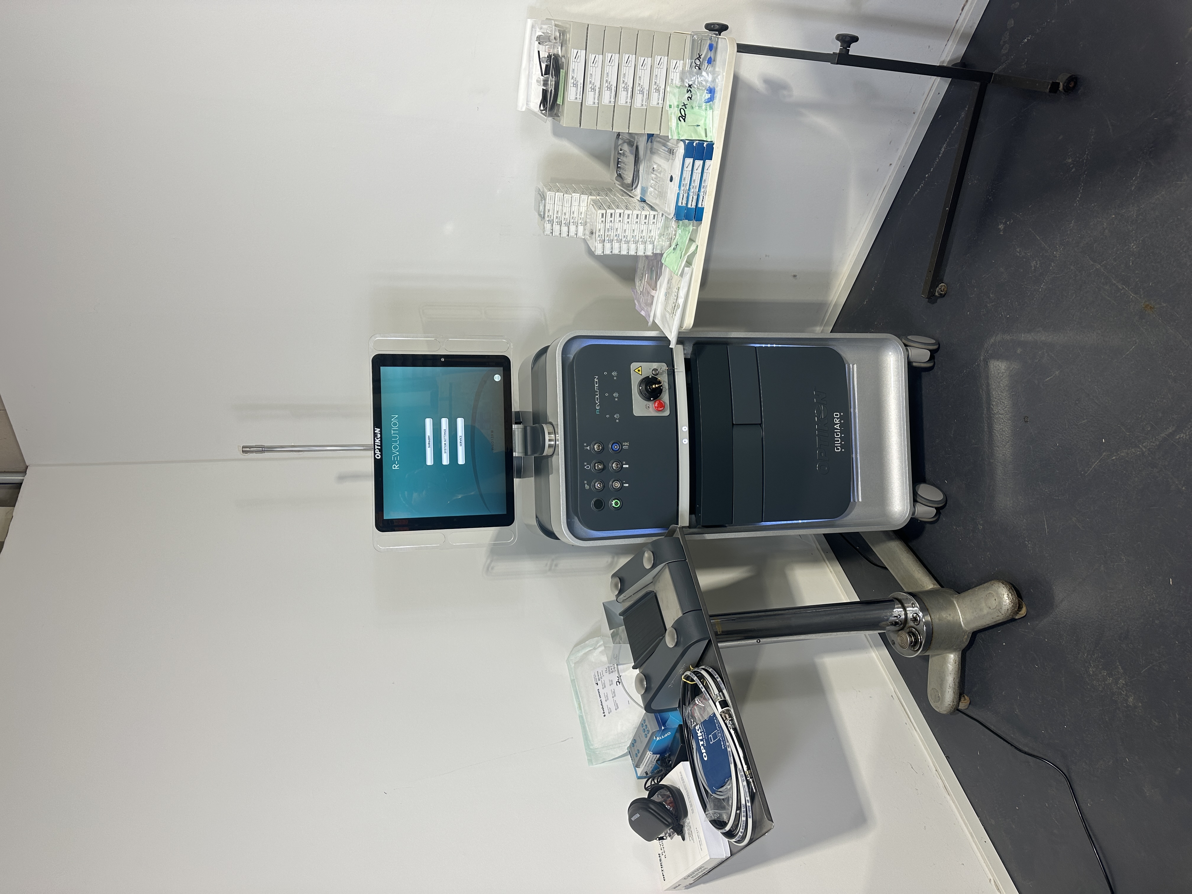 | Beschreibung: Das Option R Evolution ist ein hochwertiges ophthalmologisches Phako- und OP-System für Katarakt- und Vorderabschnittsoperationen. Das angebotene System stammt aus geringer Nutzung, befindet sich in einem sehr gepflegten Zustand mit minimalen Gebrauchsspuren und wird in der originalen Holztransportbox geliefert. Das System überzeugt durch seine präzise Steuerung, hohe Zuverlässigkeit und modulare Bauweise und eignet sich ideal für den professionellen Einsatz in Augenkliniken und OP-Zentren. Zum Lieferumfang gehören das Option R Evolution Basissystem mit originaler Holztransportbox, ein Bluetooth-Fußschalter (Ref. 112104), eine Fernbedienung (Ref. 122007), ein zweiter kabelgebundener Fußschalter, eine Manschette inklusive Anschlussleitungen, 5 Stck. Phako-Handstücke Six (Ref. 113107), ca. 35 Phaco-Tips in gebogener und gerader Ausführung, zehn Schlüssel für Phaco-Spitzen (Ref. 113402), vier Kabel für diathermische Sonden (Ref. 115101), drei Diathermiepinzetten (Ref. 115301), eine Endo-Beleuchtungssonde (Ref. 192807), sieben Bildschirmabdeckungen (Ref. 192704A), eine Schutzbrille, eine Abdeckfolie für das Gerät sowie die Bedienungsanleitung. Durch dieses außergewöhnlich umfangreiche Zubehör ist das System sofort einsatzbereit und bietet eine komplette OP-Lösung für die moderne Kataraktchirurgie. Optional dazu: 5 Stck. Phako-Handstücke Six (Ref. 113107) für 1.000 netto/Stck.