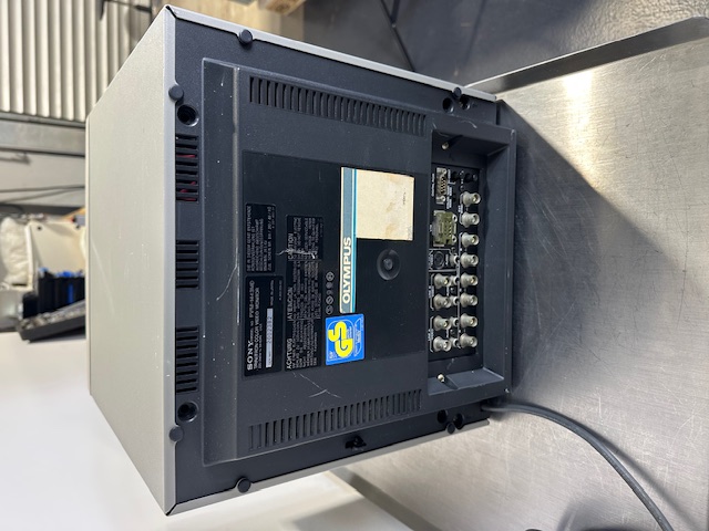 | Beschreibung: hochauflösender 14 Zoll Videomonitor (medizinisch), Anschlüsse: Line A und B, S-Video, normaler Gebrauchtzustand