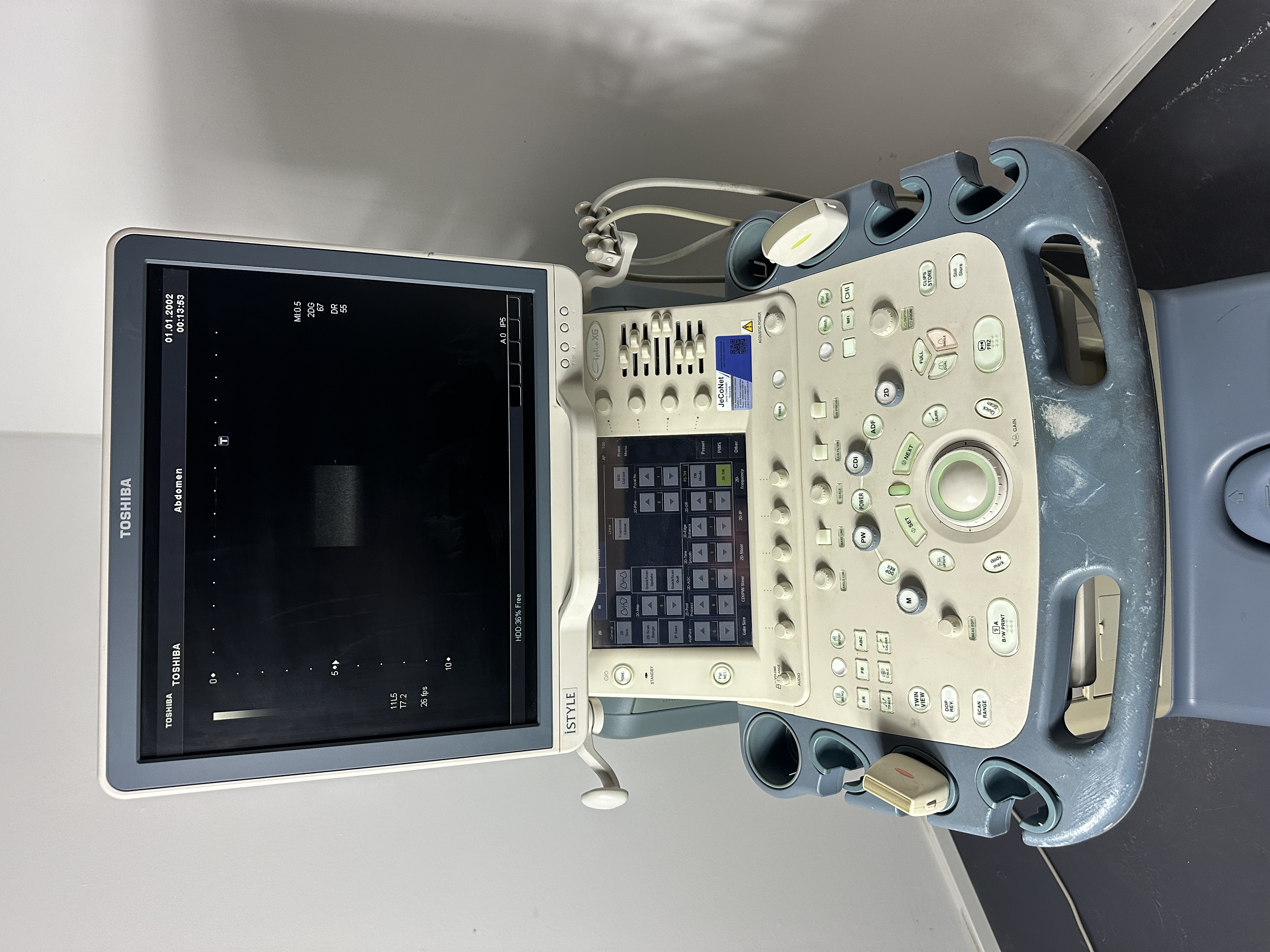| Beschreibung: Aplio XG Printer: Sony UP-D897 inkl. Printrollen, Schallsonden: Linearsonde Toshiba PLT-704AT, Convexschallsonde 6C1, Gebrauchtzustand, Griffschalen werden auf wunsch neu lackiert